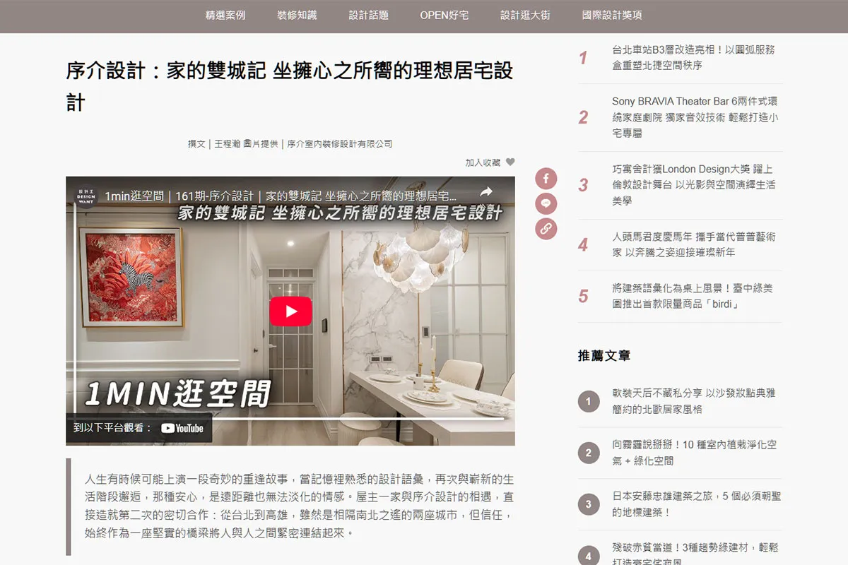 首頁 > 媒體與觀點 > News > 序介設計:家的雙城記 坐擁心之所嚮的理想居宅設計